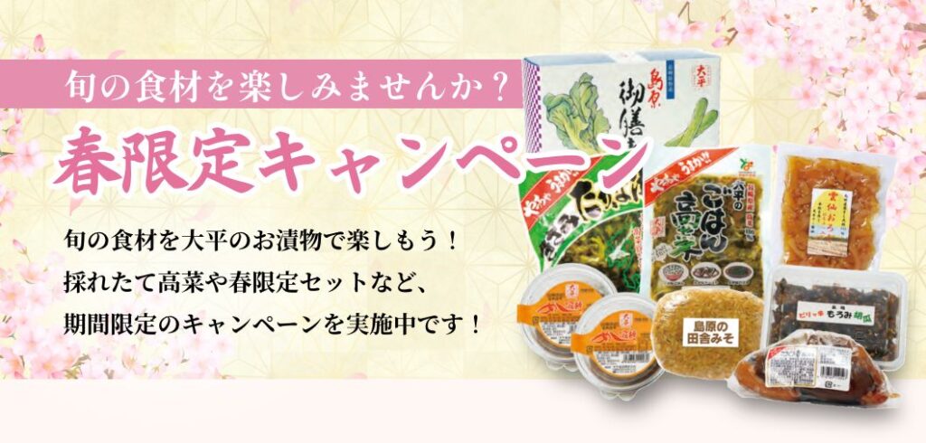 大好評の得・トクセットに春バージョンが登場!大人気のこうじ漬や高菜、定番商品「めし泥棒」など、ボリューム満点です。