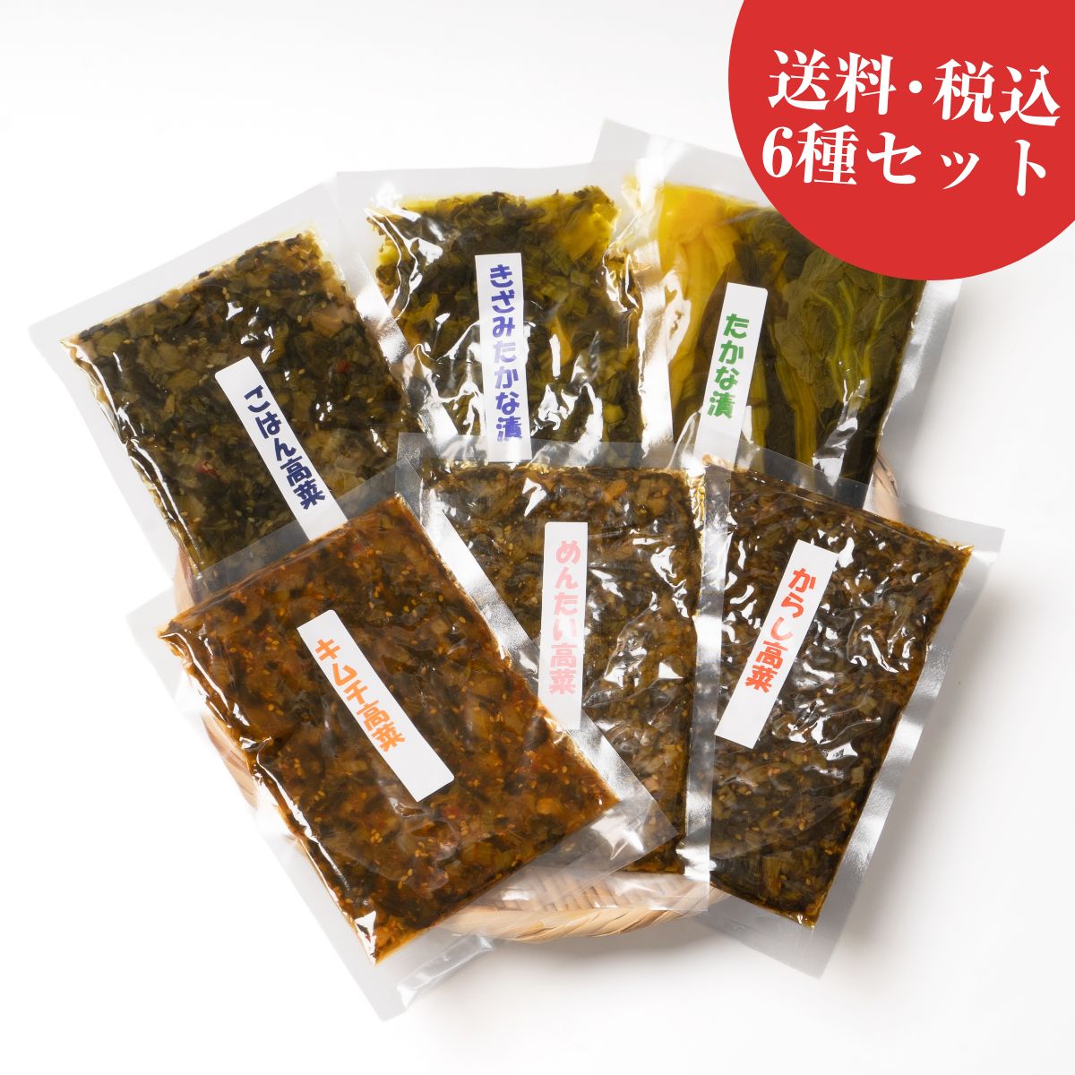 大平食品の高菜6種が入ったお試しセットが登場!送料・税込商品ですので、ちょい買いや本セット単品だけの購入は大変お得です♪